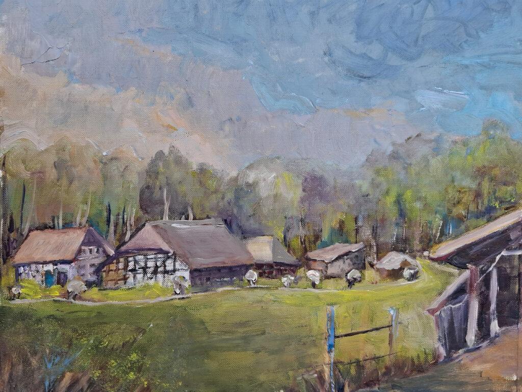 Zwischen Maas und Schwalm- Nette – der Niederrhein in Öl Clörather Mühle, Öl auf Papier, 30 x 24 cmTüchenbroicher Mühle, Öl auf Papier, 24 x 30 cmBoote an der MühleNiederrheinisches Freilichtmuseum Grefrath